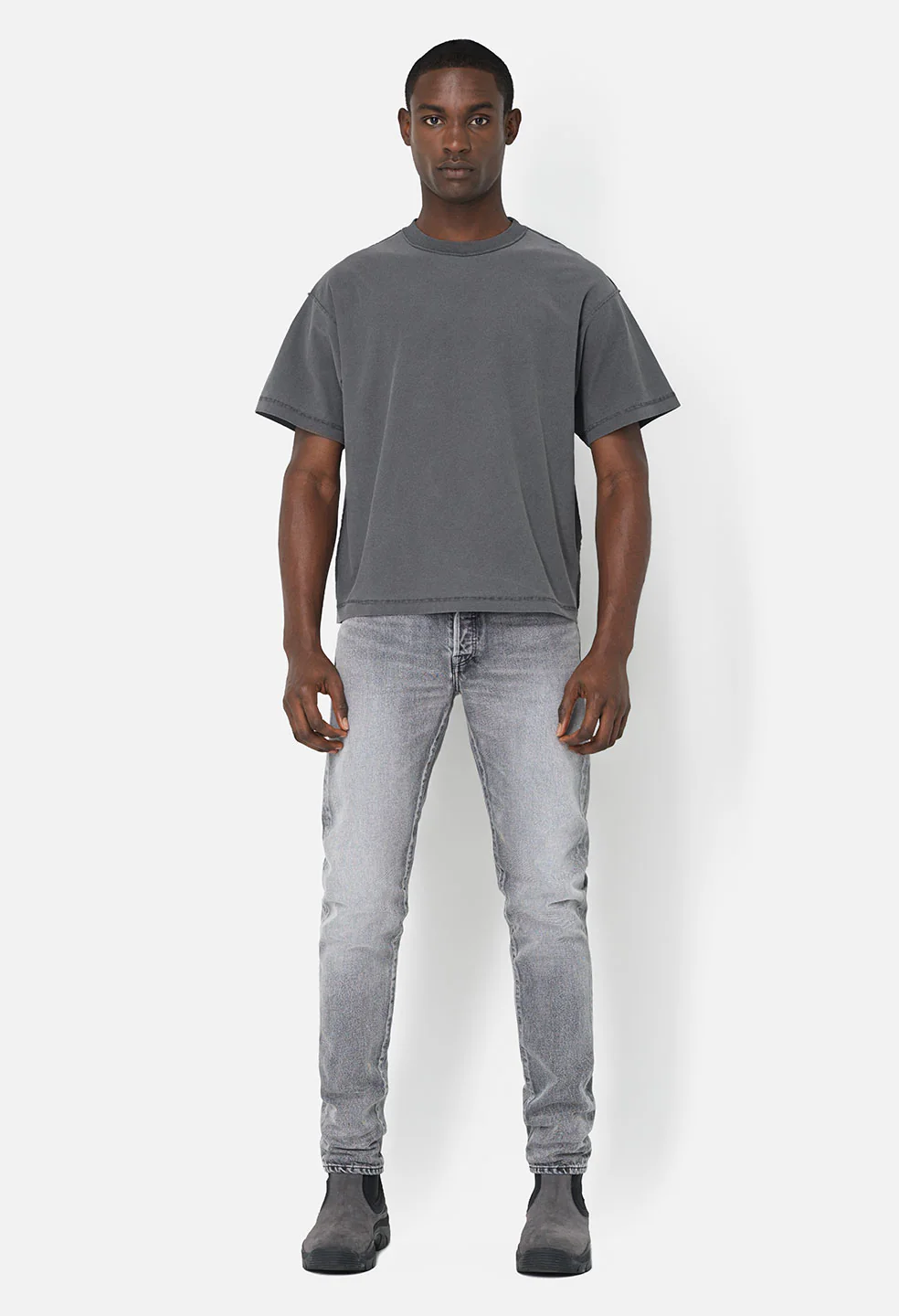 Boxy, cropped tee with dropped shoulders, crafted from lightweight 30-single jersey for a soft, broken-in hand feel. Reversed, inside-out stitch detailing runs throughout. Washed for a subtle vintage character.